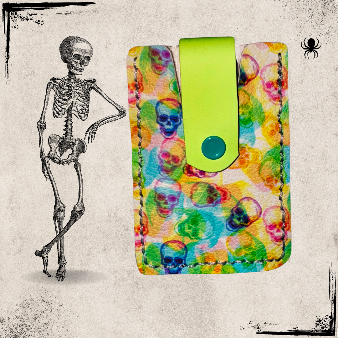 If you are running from your demons and don't want to be burdened with a purse or large wallet, this card holder is perfect. With a snap closure, its slim design fits just the necessities, like your ID and credit card.