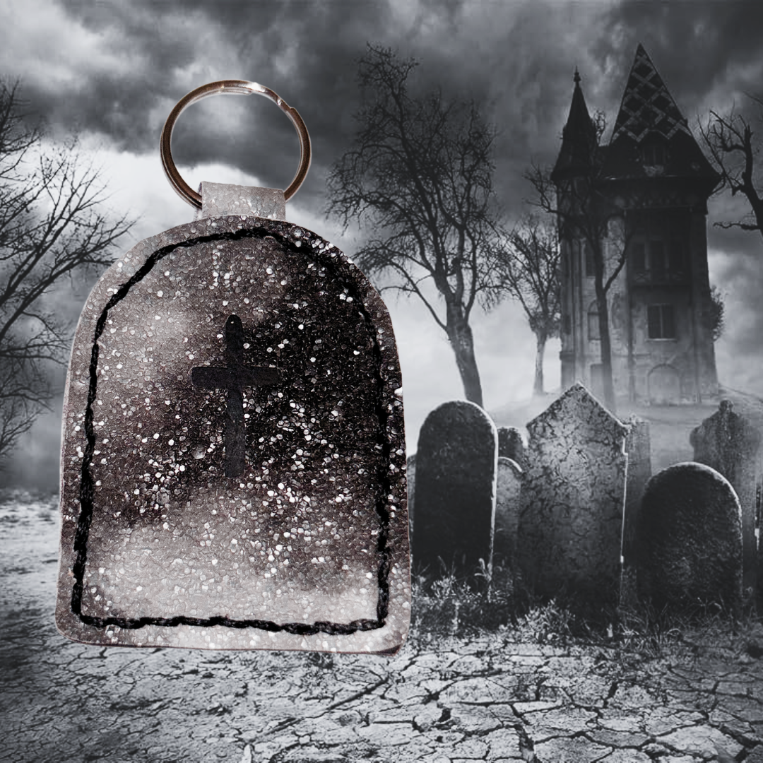 The perfect addition to your keys or bag. Handmade tombstone on a split ring.